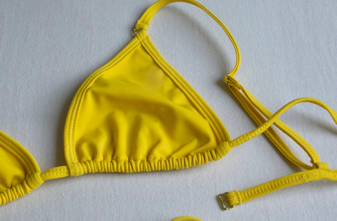 De Earth bikinitop heeft een triangel vorm met verstelbare bandjes.
